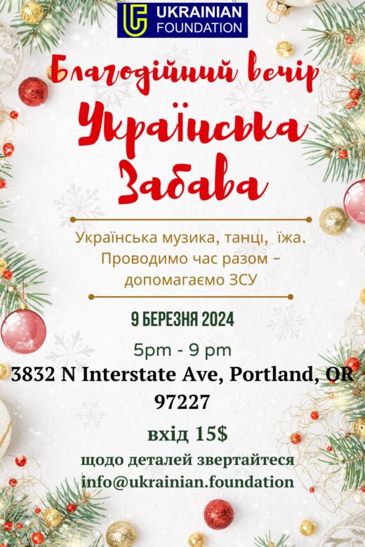 Ukrainian Charitable Event – Благодійний Вечір Українська Забава Увага! Через погодні умови (може випаде сніг! у Порленді!), ми змінили дату події. Нова дата--9 березня, субота. Адреса та інші …Continue Reading about Ukrainian Charitable Event – Благодійний Вечір Українська Забава